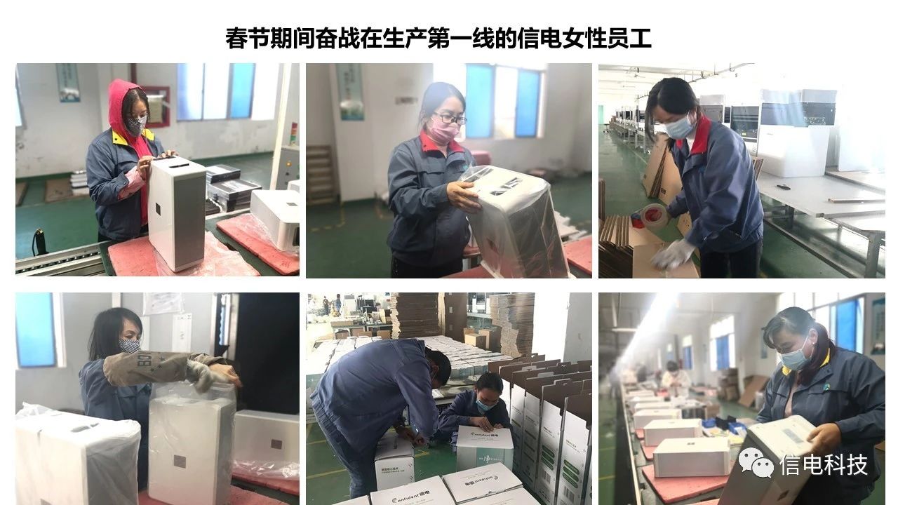 面對這場(chǎng)突如其來(lái)的疫情抗擊戰,作為專(zhuān)業(yè)設計、生產(chǎn)和銷(xiāo)售空氣凈化消毒機及其核心部件的國家高新技術(shù)企業(yè),信電科技部分員工放棄春節假日休息時(shí)間,奮戰在生產(chǎn)和市場(chǎng)第一線(xiàn),盡可能快地滿(mǎn)足各地醫院和公共場(chǎng)所對空氣凈化消毒機的需求。公司早在1月30日就開(kāi)始復工上班,那時(shí)奮戰在生產(chǎn)和市場(chǎng)第一線(xiàn)的女性員工有:陳秋(品質(zhì)部)、吳志艷(開(kāi)發(fā)部)、張秋梅(財務(wù)部)、梁詩(shī)儀(生產(chǎn)部)、鐘麗芬(生產(chǎn)部)、范閑君(生產(chǎn)部)、賈小紅(生產(chǎn)部)、鄭艷(生產(chǎn)部)、李娜(市場(chǎng)部)、謝丹(市場(chǎng)部)、張丹(東北分公司)。
