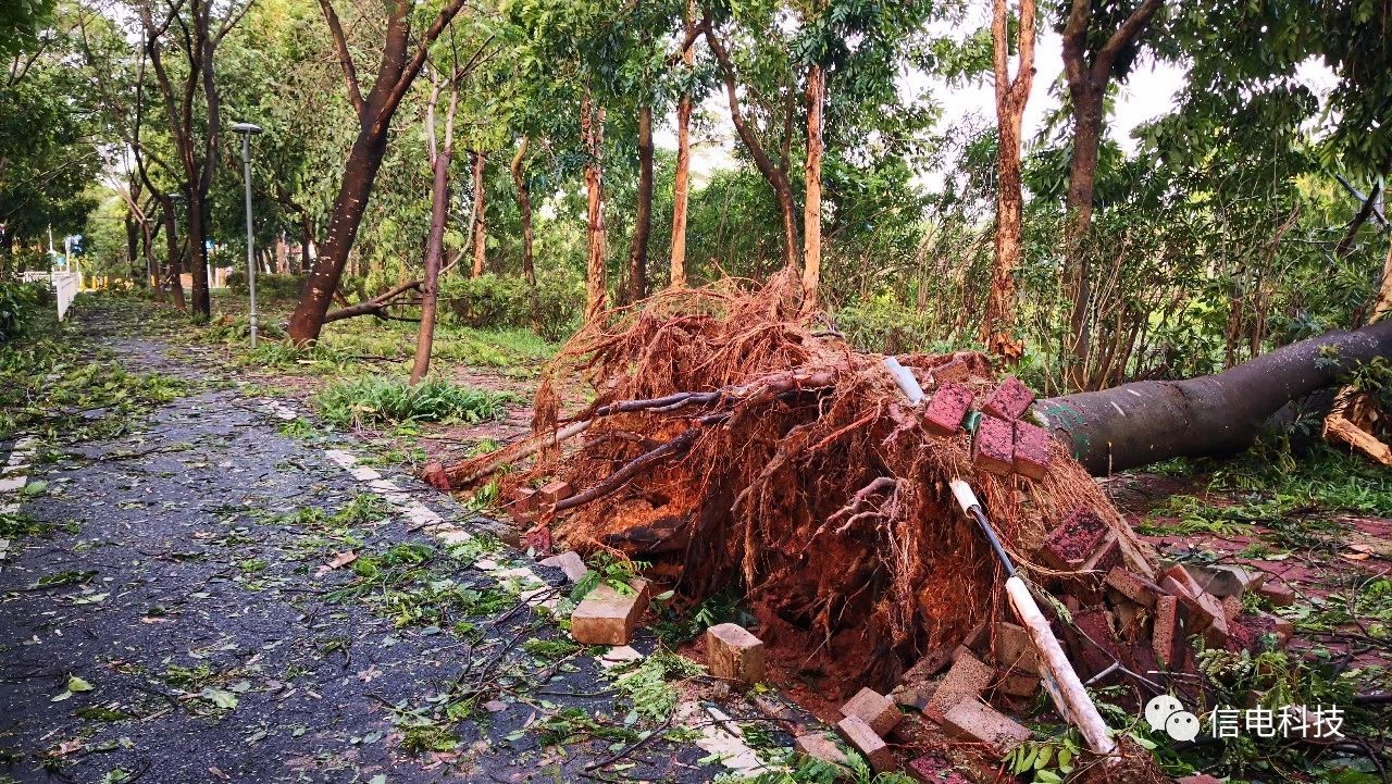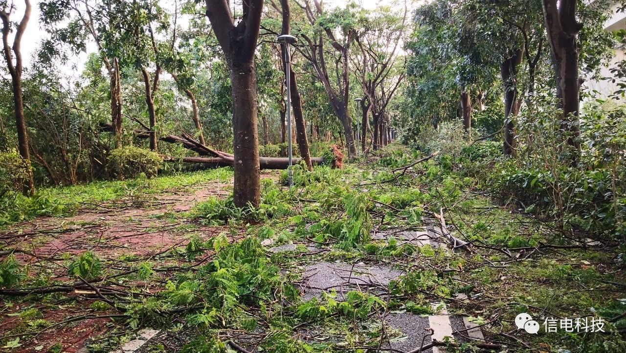 信電科技園地處深圳東部,離深圳大亞灣海邊約20公里,周邊又都是空曠地帶,雖然做了抗臺風(fēng)的準備,但受到臺風(fēng)的影響還是很大: