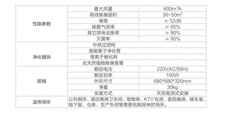 ★ 凈化五合一:中效過(guò)濾凈化,高能離子除臭,活性氧離子除臭,等離子催化凈化,植物液降解除臭;